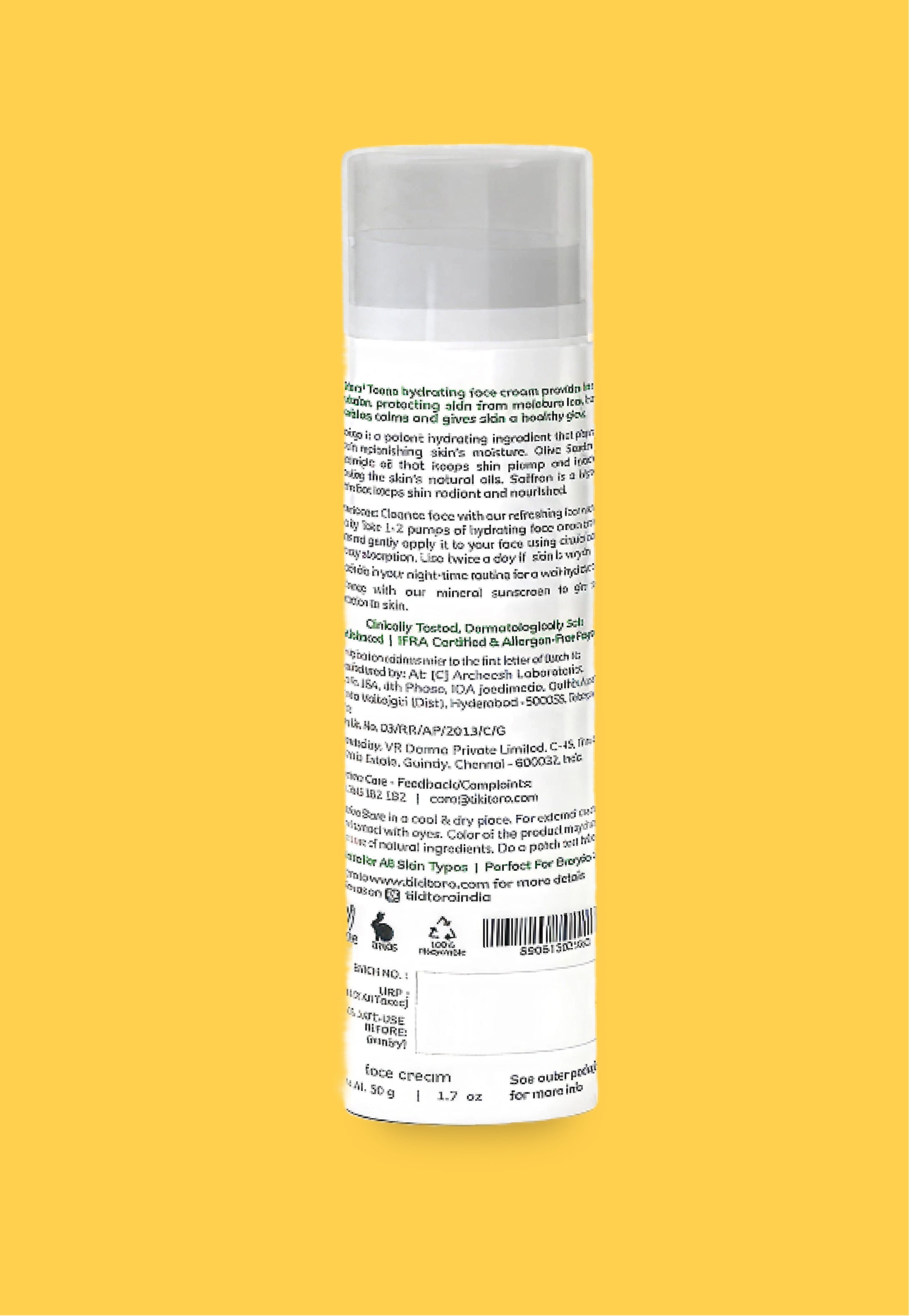 Dry skin, who? Meet your new hydration hero—Tikitoro Teens Hydrating Face Cream. It’s light, non-sticky, and doesn’t try too hard (just like your best friend). With science-backed ingredients and zero greasy drama, this moisturizer gets straight to the point: keeping your skin calm, soft and smooth. It’s face care that shows up, glows up, and keeps up—with every class, crash, and selfie.