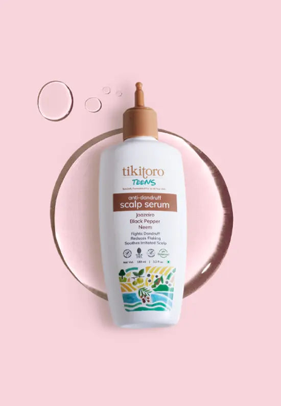 Ditch the flakes, keep the cool! Tikitoro Teens Anti-Dandruff Scalp Serum is your ultimate sidekick for a healthier, happier scalp. Clinically tested and dermatologically safe, this anti dandruff hair serum for teens is a powerhouse that works against dandruff-causing fungi, soothes irritation and keeps sebum in check. Pair it with our Anti-Dandruff Shampoo for a dynamic duo that keeps your scalp calm, your style fresh, and your confidence soaring—all day long.