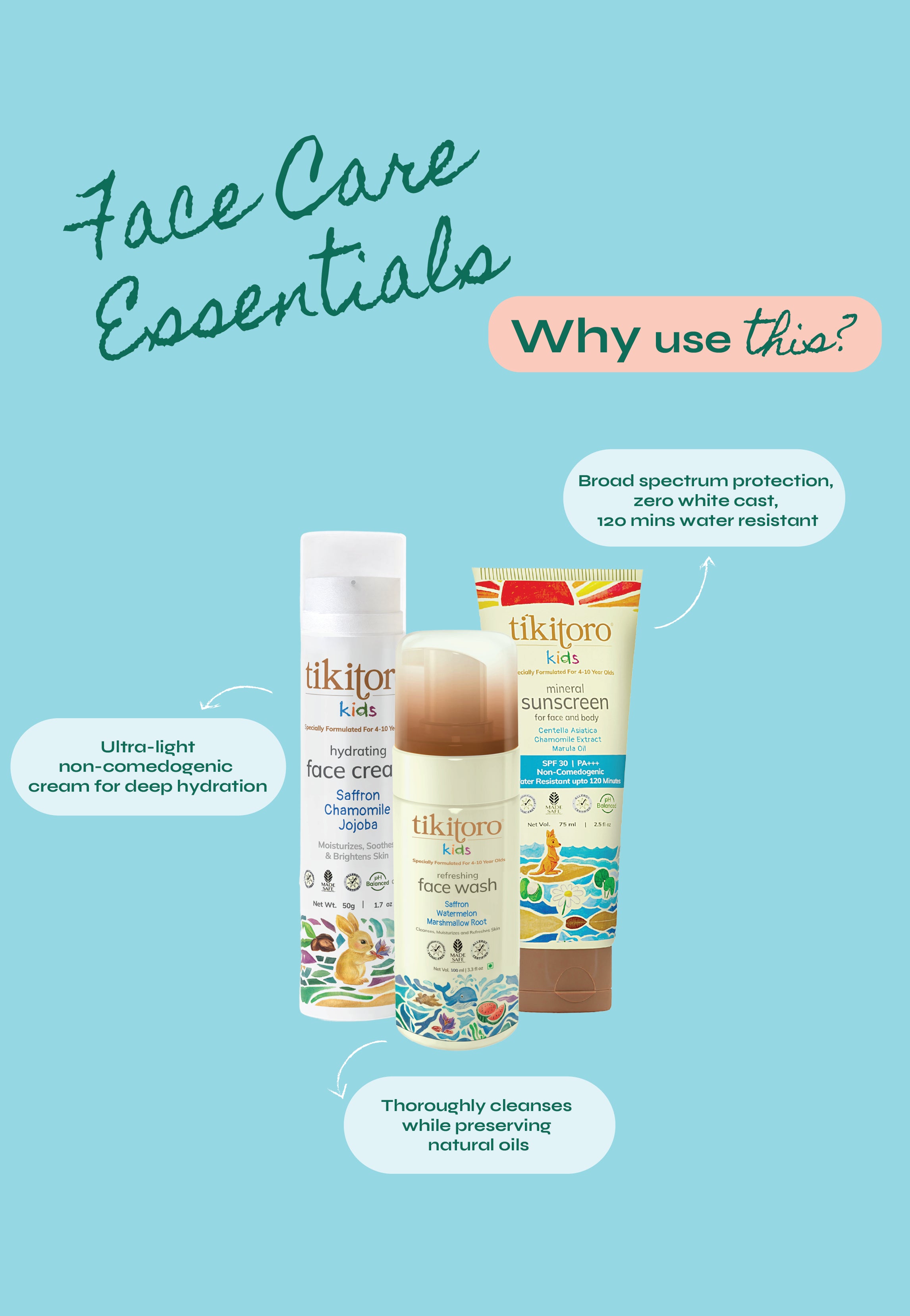 The Tikitoro Kids Face Care Essentials Combo is the ultimate daily skincare routine for kids, engineered to deliver total protection, powerful hydration, and healthy glow in three high-performance steps.