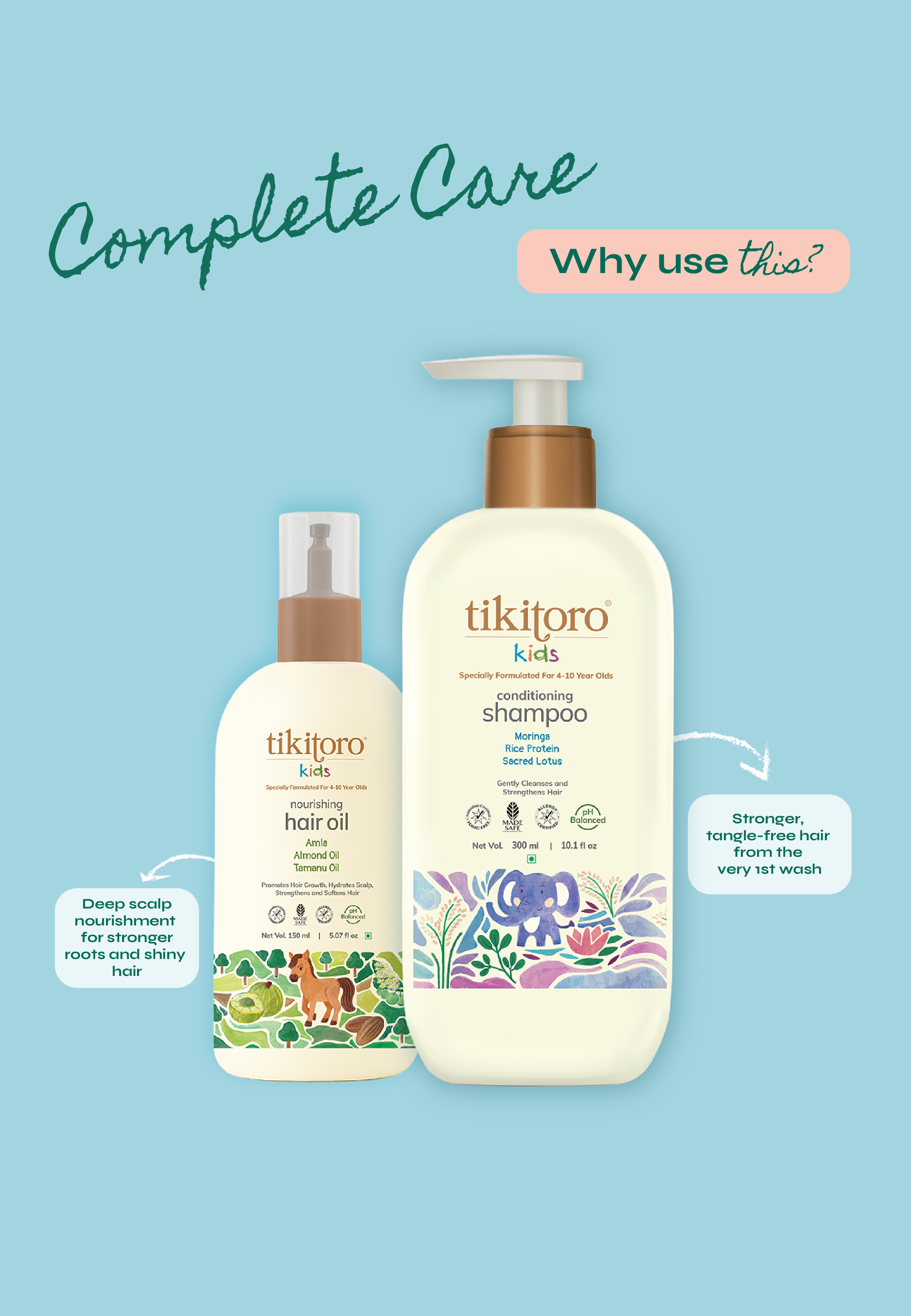 Because they work best as a team! The Hair Oil feeds the roots for growth, and the Shampoo cleans gently and removes tangles. Using them together delivers superior results (stronger, smoother hair!) and saves you money.