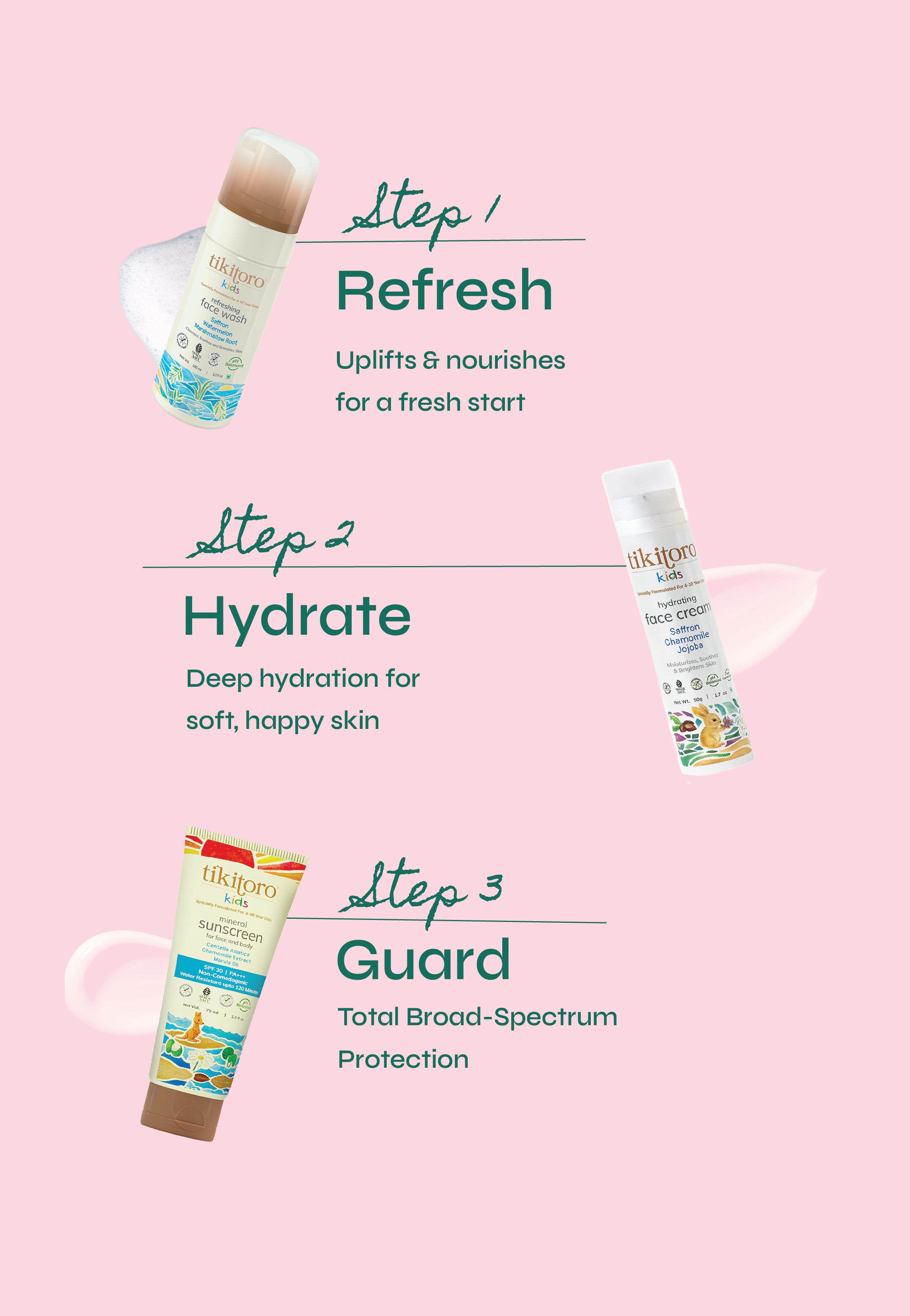 Messy faces? No problem! Tikitoro Kids Refreshing Face Wash makes clean-ups for kids easy while keeping their skin hydrated, soft, and glowing. This gentle facewash for kids can be used every day and is packed with nourishing care. This nourishing face wash for children turns cleansing into a fun little adventure. Plus, it’s tough on dirt but super kind to delicate skin, making it a parent’s best-kept secret for happy, healthy faces.