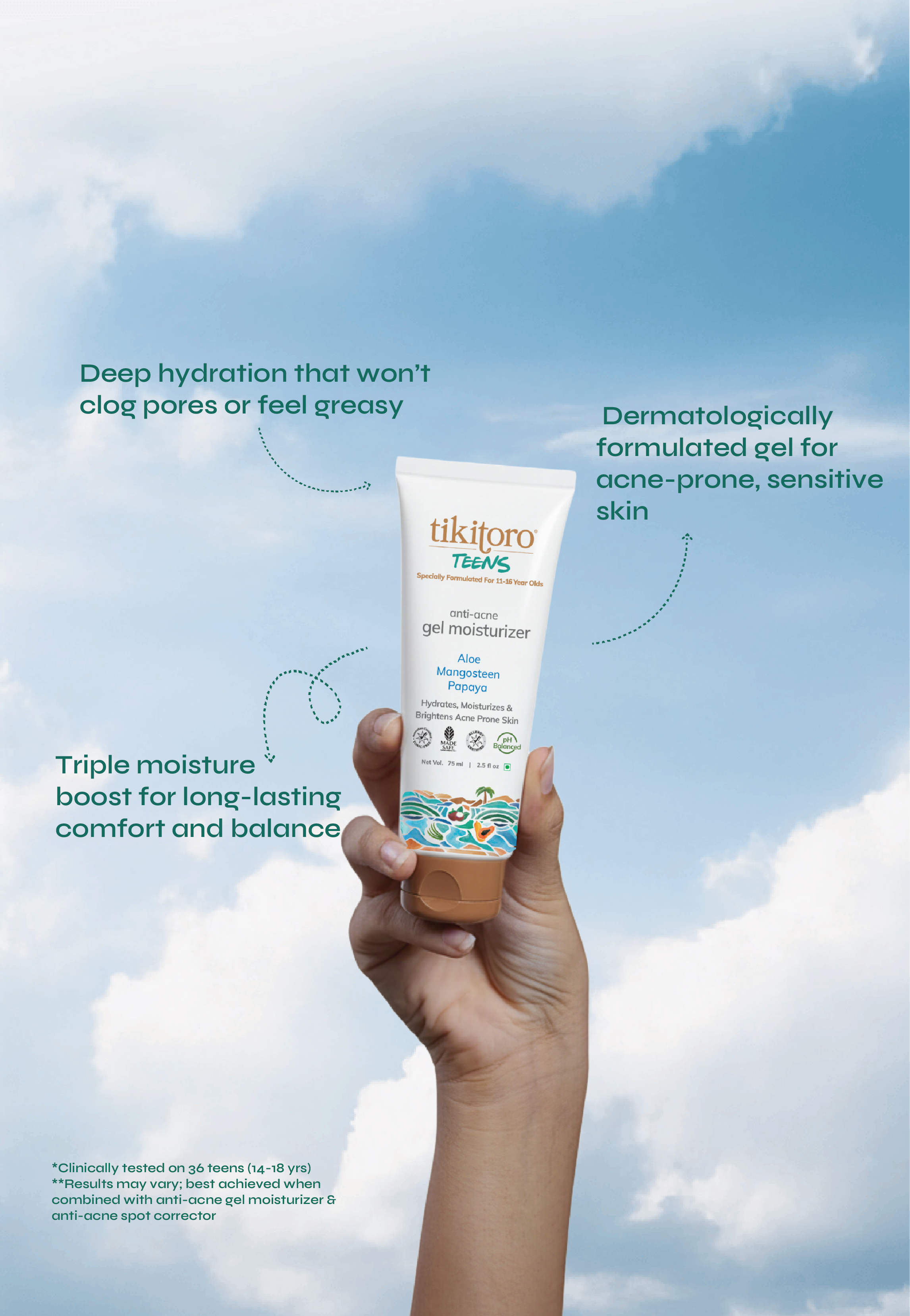 Skincare isn’t just about looking good—it’s about feeling great, too. Enter Tikitoro Teens Anti-Acne Gel Moisturizer: your go-to hydration hero for acne-prone skin. This lightweight gel moisturizer does it all—soothes redness, balances oil, and keeps your skin happy without clogging pores. Plus, it gently exfoliates to reveal brighter, smoother skin over time. Pair it with our Anti-Acne Face Wash and Spot Corrector for a skincare routine that’s as easy as it is effective.