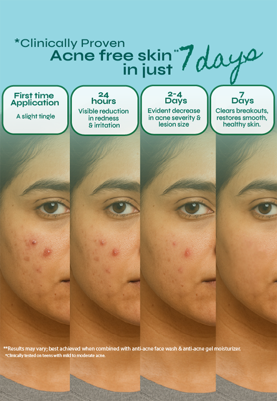 Reapply 3–4 times a day to keep the treatment active. By days 2–4, your acne spots will begin to shrink, with reduced pus and redness.