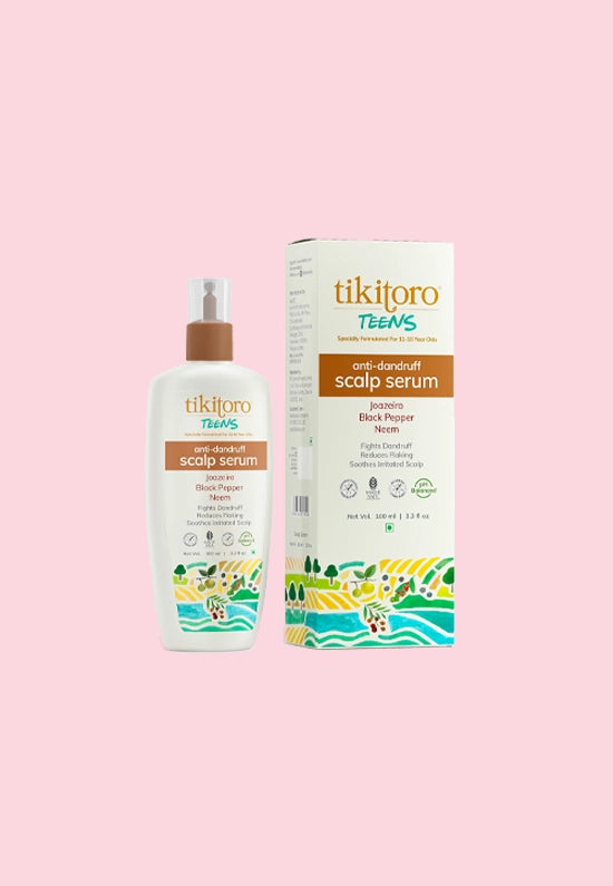 Ditch the flakes, keep the cool! Tikitoro Teens Anti-Dandruff Scalp Serum is your ultimate sidekick for a healthier, happier scalp. Clinically tested and dermatologically safe, this anti dandruff hair serum for teens is a powerhouse that works against dandruff-causing fungi, soothes irritation and keeps sebum in check. Pair it with our Anti-Dandruff Shampoo for a dynamic duo that keeps your scalp calm, your style fresh, and your confidence soaring—all day long.