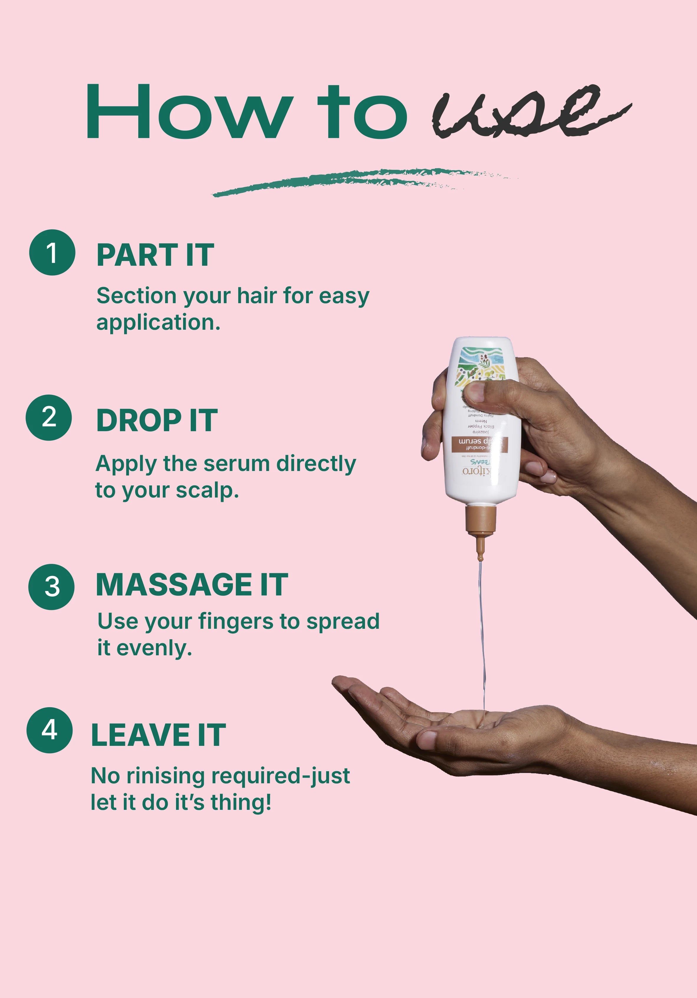 Let the serum work its magic—no rinsing needed! Use daily for the best results and pair with our Anti-Dandruff Shampoo thrice a week.