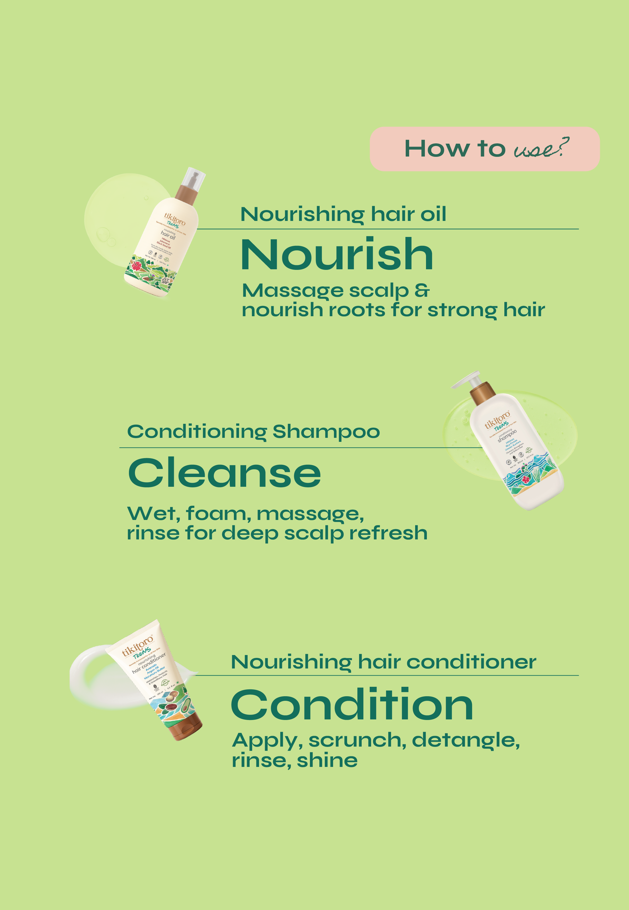 From messy hair to silky strands (and everything in between), the Tikitoro Hair Care Combo is here to make hair care a breeze! Start with the Teens Nourishing Hair Oil, packed with nutrients to strengthen hair from root to tip, leaving it shiny, smooth, and healthy. Follow it up with the Teens Conditioning Shampoo, specially designed for gentle cleansing and effortless detangling, ensuring every wash leaves their hair soft, happy, and full of bounce. Taking care of your little one's locks has never been this simple—or this fun!