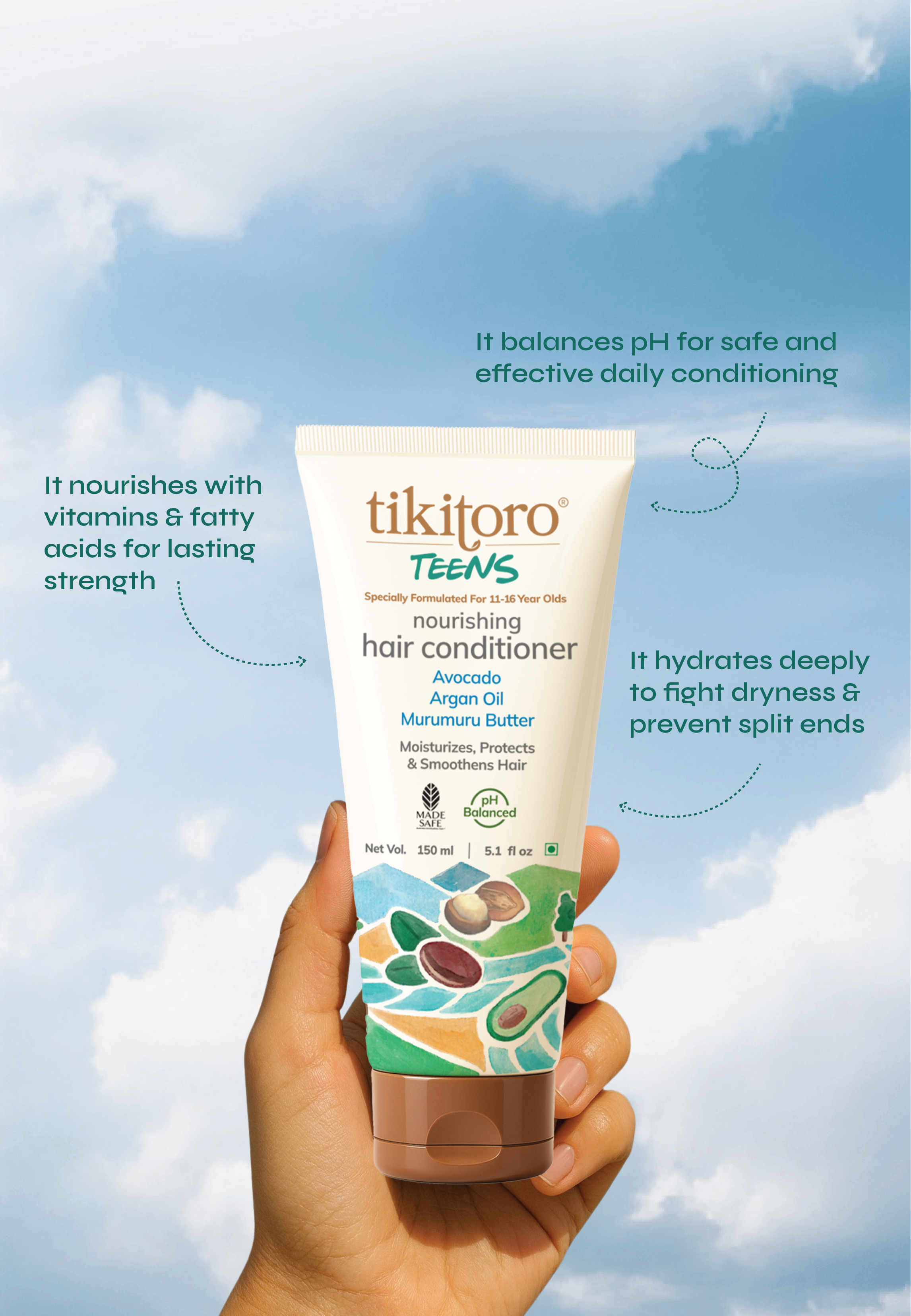Tired of hair that acts up more than your group chat? Tikitoro Teens Nourishing Hair Conditioner is here to calm the frizz, smooth things over, and bring balance back to your hair routine. With gentle conditioning agents, zero build-up, and a shine that doesn’t quit, this one’s made to play nice with your scalp and your strands. Use after shampoo, breathe in that subtle sweet scent, and thank yourself later.